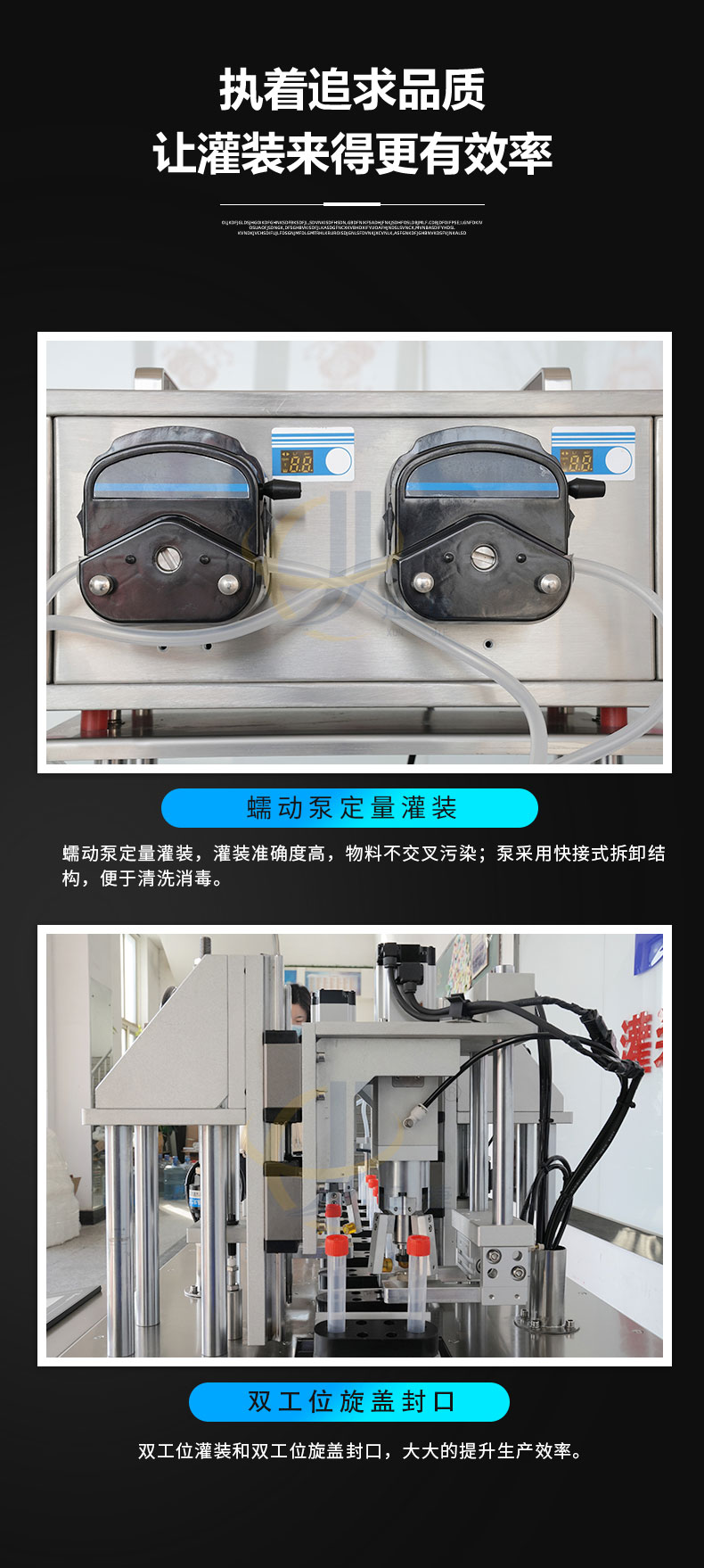 診斷試劑灌裝旋蓋機(jī)適用于診斷試劑、液體采樣管等管狀容器。本機(jī)可選配防塵罩搭配層流罩(FFU)結(jié)構(gòu),可達(dá)到局部百級環(huán)境下完成灌裝及封蓋。