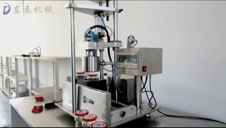 后,就是旋蓋機(jī)啦,這個就不用多說了,指的就是玻璃瓶馬口鐵蓋的旋緊。旋蓋機(jī)有很多稱呼:旋蓋機(jī)、上蓋機(jī)、擰蓋機(jī),封口機(jī),封蓋機(jī)等等,都是同一意思。