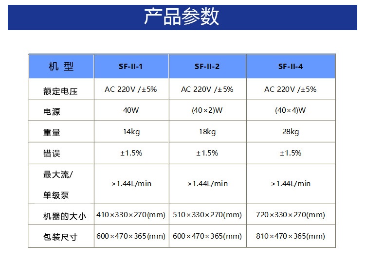 8、灌充量SF-II從1ml至10000ml可調(diào);SF-I從10ml-80000ml可調(diào),調(diào)節(jié)方便。