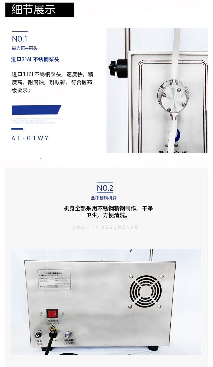 磁力泵式半自動液體灌裝機細(xì)節(jié)展示圖: